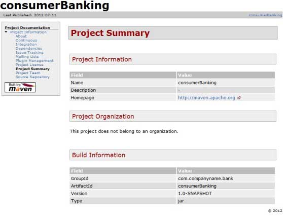 C:\MVN\consumerBanking> mvn siteMaven 开始生成文档: