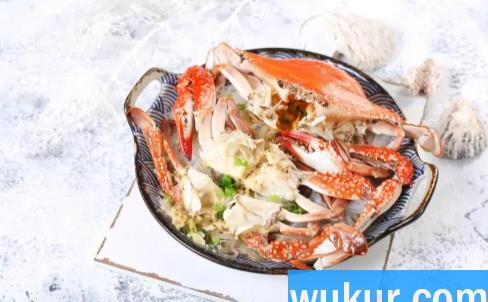 将梭子蟹去皮并清洗干净。把肉洗净,切成五份待用。莲藕洗净切片备用。把锅里的油加热,把莲藕放入水中煮汤。然后取出切片,与葱、姜、蒜和梭子蟹一起放在盘子里。将莲藕汤、盐和料酒混合在汤中,然后放在梭子蟹上。上菜前用大火蒸10分钟。