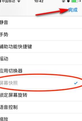 7、“屏幕快照”就添加到快捷菜单了,点击“完成”。