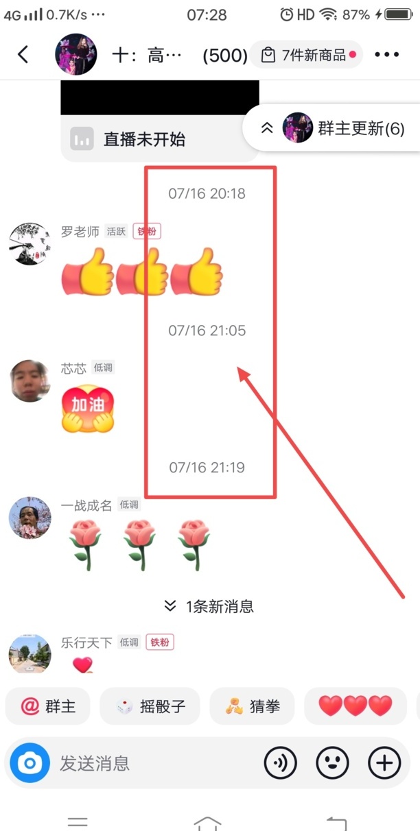在聊天记录的下方即可看到日期