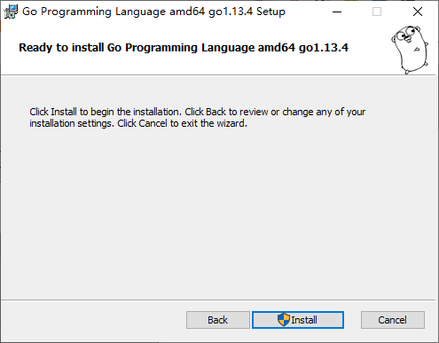 Go语言开发包的安装没有其他需要设置的选项,点击“Install”即可开始安装,如下图所示: