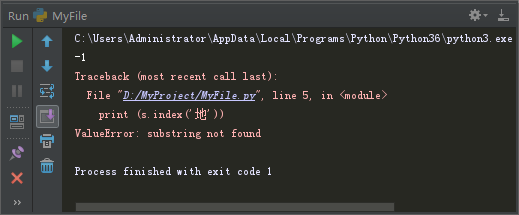 但是,当没有查询结果时,index函数与rindex函数会提示错误:ValueError:substring not find(值错误:未发现被查询的字符串)。