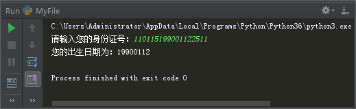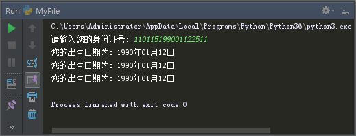print('您的出生日期为:%s年%s月%s日' % (id[6:10], id[10:12], id[12:14]))