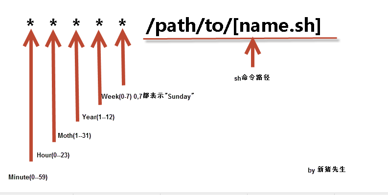 星期(Day of week) | 否 | 0-6 or SUM-SAT | * / , – ? |