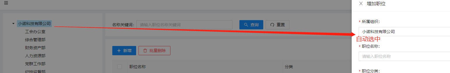 35、【升级】用户、角色、字典、机构、岗位这些左树右表得到增强,新增时选择树后对应新增的表单跟着选中