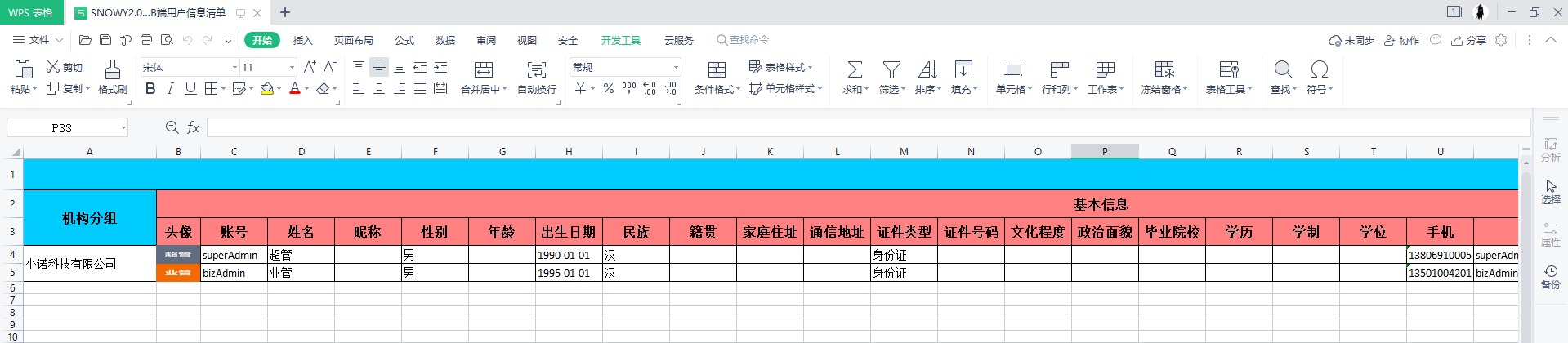 导出的Excel
