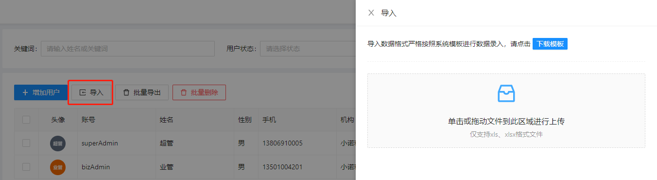 24、【新增】新增用户导入、批量导出Excel、导出基本信息Word