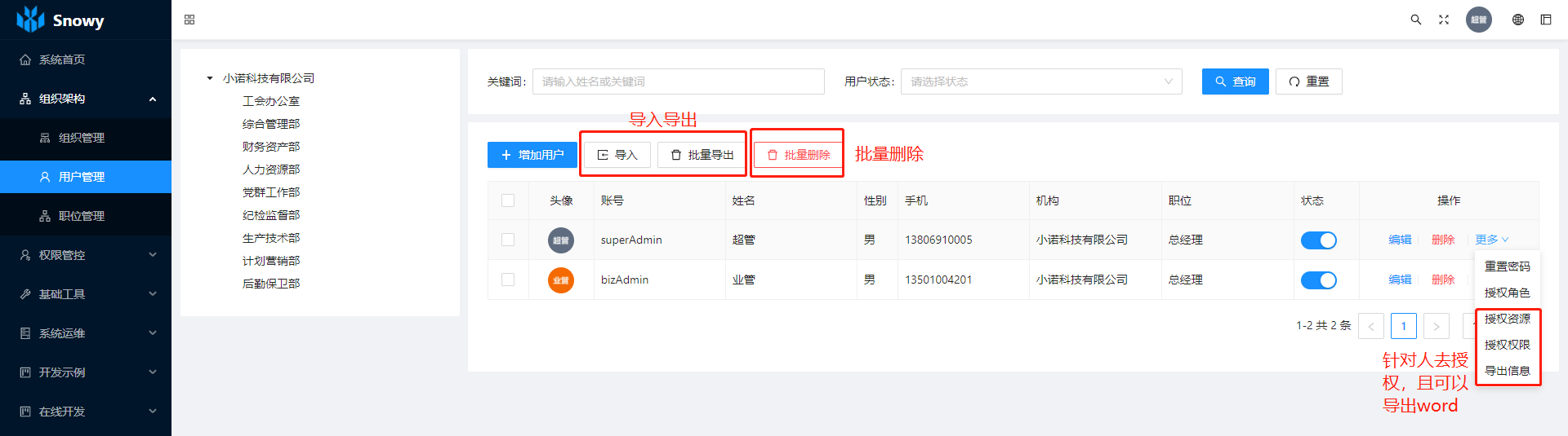新增导入导出、单独授权