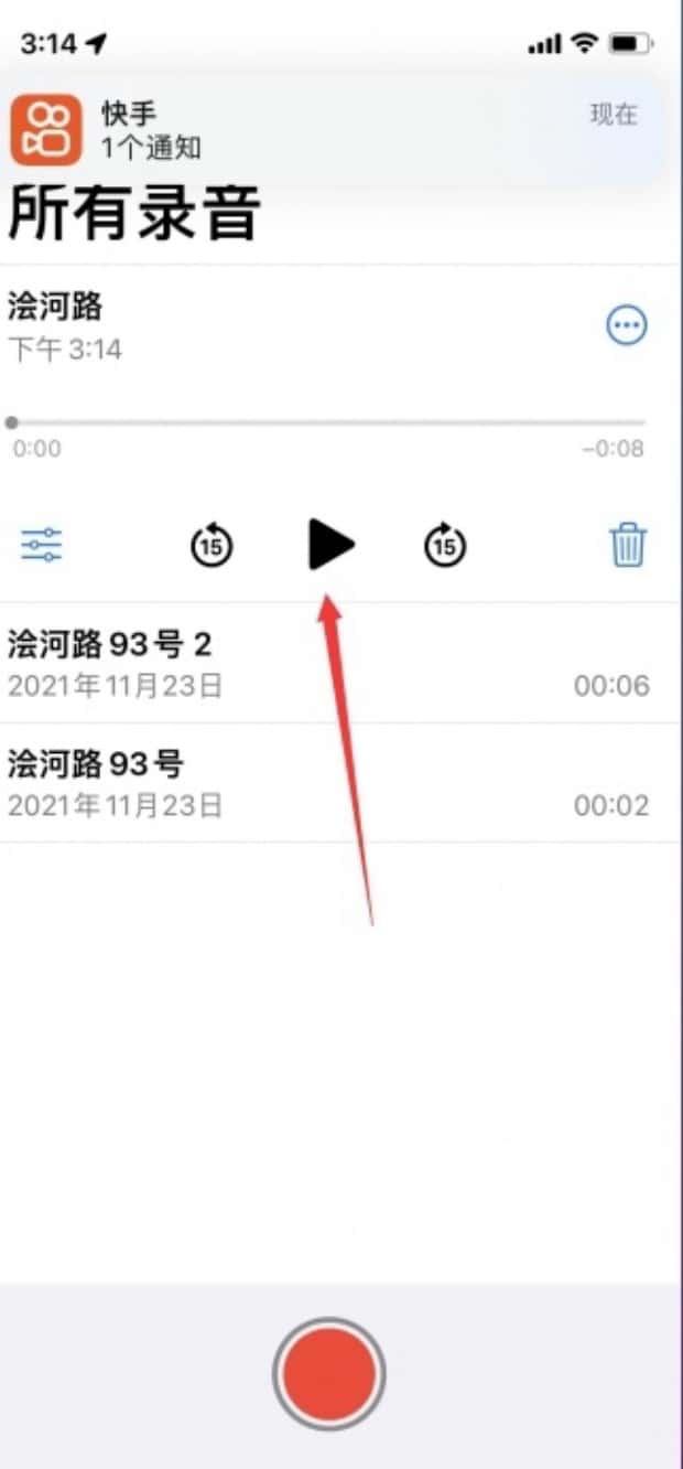 录制完成后自动保存到语音备忘录中,点击播放键即可听取录音。