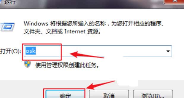 也可以直接打开电脑中运行窗口,输入“osk”后点击确定即可调出软键盘。
