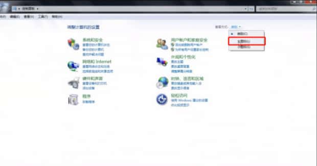 打开电脑中的控制面板界面,将右上角的查看方式改为“大图标”。