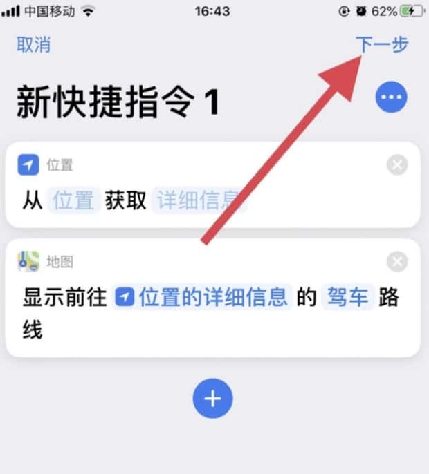 一个快捷指令,可以添加多个功能,完成后点击【下一步】。