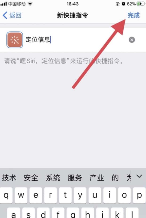 为快捷指令重命名,名称最好简洁易懂,点击【完成】。
