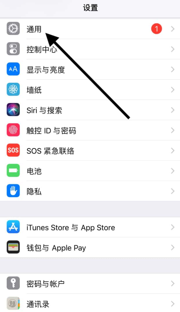 1.打开设置图标,进去设置页面后,找到通用选项,打开