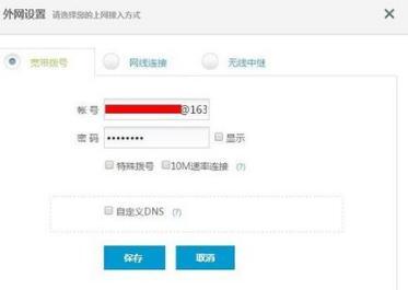 第四:点击“设置”,输入“宽带帐号”及“宽带密码”,点击“保存”。