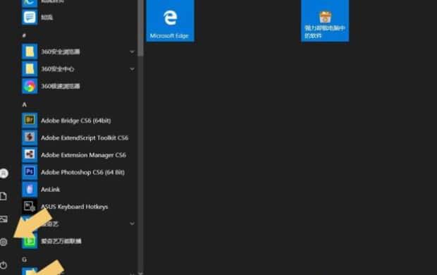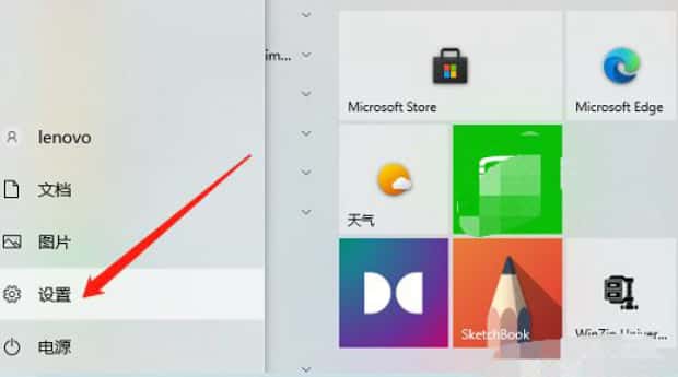 打开电脑桌面上的开始菜单,找到齿轮图标,点击进入系统设置。如下图: