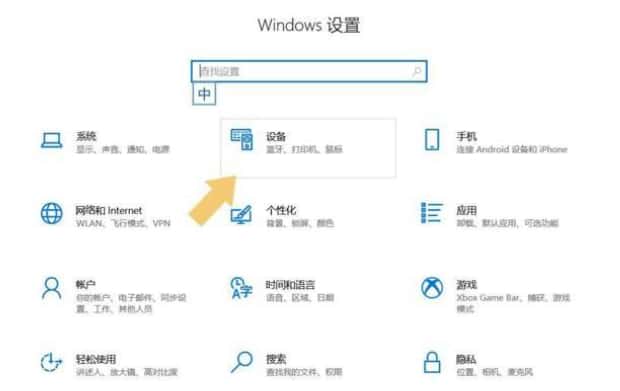进入系统设置界面以后,在弹出的界面里找到设备。如下图: