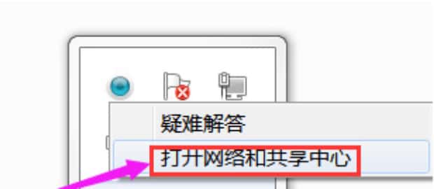 4.然后右键单击桌面右下角的“网络图标”,然后选择“打开网络和共享中心”。