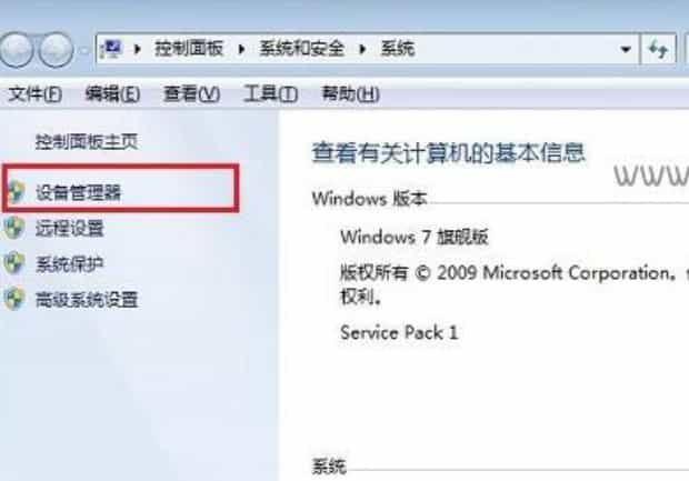 2、在打开的Windows系统属性窗口中,点击左侧边栏的“设备管理器”菜单项。