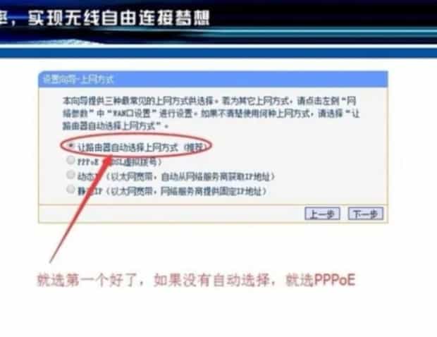 选择“让路由器自动选择上网方式”选项,如果没有自动选择,就选PPPoE选项。