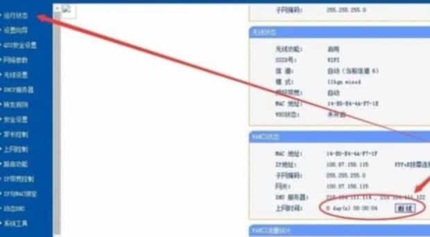 在选择运行状态,在上网时间处如果有断线选项,说明连接成功!