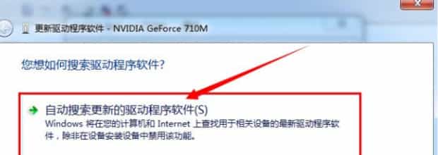 在弹出的选项中点击“自动搜索更新的驱动程序”软件。