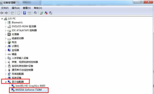进入到设备管理器窗口后,我们选择“显示设备器”,双击显卡类型。