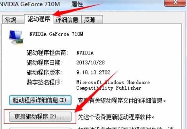 当进入到显卡属性页面后,我们转移到驱动程序页面。这时点击更新驱动程序