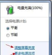 2.然后点击“调整屏幕亮度”和“更多电源选项”都可以。打开电源选项对话框。