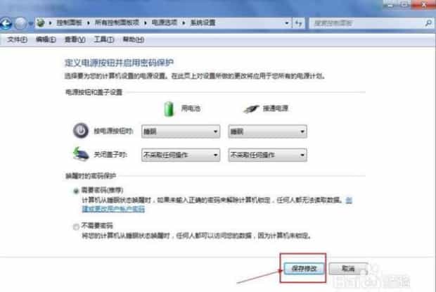 6.选择完毕后,点击右下角的“保存修改”按钮,该修改即可生效。以后我们的笔记本盖子想关就关,哈哈。