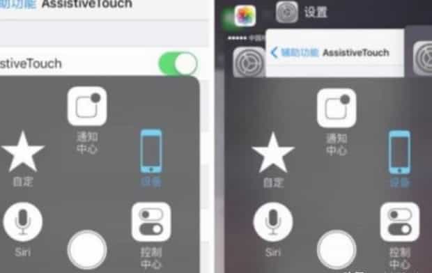 5、如果在截屏时不想把小圆点也照进去,也可利用屏幕快照功能,如果想把小圆点功能图标拍上去,可以先按某个辅助功能,同时按住锁屏半秒这样,再按HOME键就能截图了。