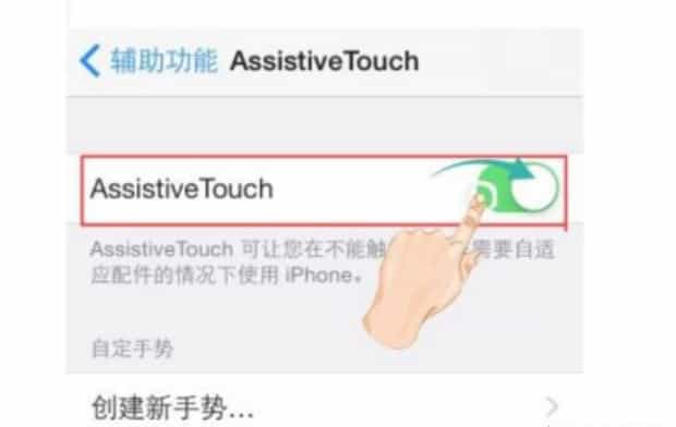 2、开启小圆点:打开手机界面——点击设置——通用——辅助功能——Assistive Touch,向右滑动开始。这时小圆点就可以相当于HOME键了。