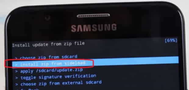 返回到Recovery界面,用音量键点击 Install zip from SD card 选项安装刷机程序