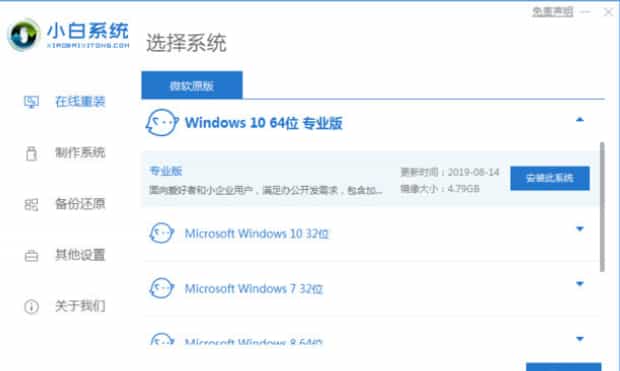 3、如果您的电脑仍然蓝屏,也可以尝试更换其它的操作系统然后解决电脑蓝屏问题。一般重装系统我们可以通过使用小白一键重装系统工具进行重装即可