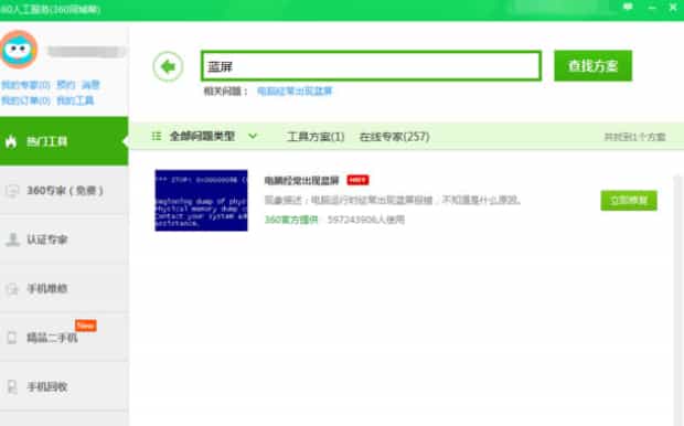 4、当然,您也可以尝试使用360安全卫士中的蓝屏补丁修复工具尝试进行修复,不过一般可能尝试修复并不是特别好