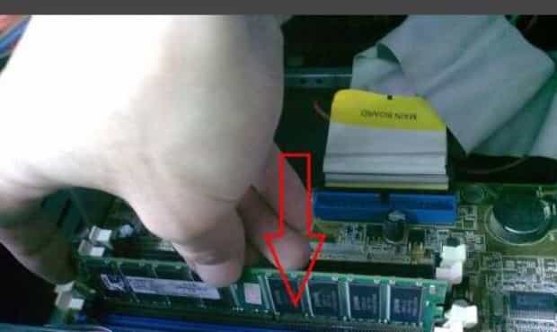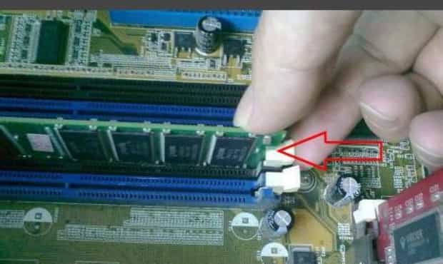 第二:如电脑内已有内存,需要把原内存拆下,在内存两侧有锁卡扣,用左右手的手指尖将卡扣推开,取出内存条。