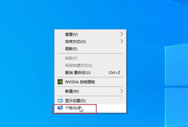 鼠标右键单击桌面空白处,点击个性化。