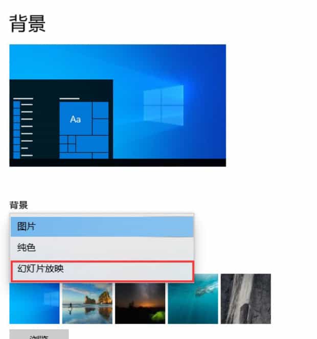 Windows系统本身是不可以设置动态壁纸的,但可以设置成幻灯片放映的方式,如下所示: