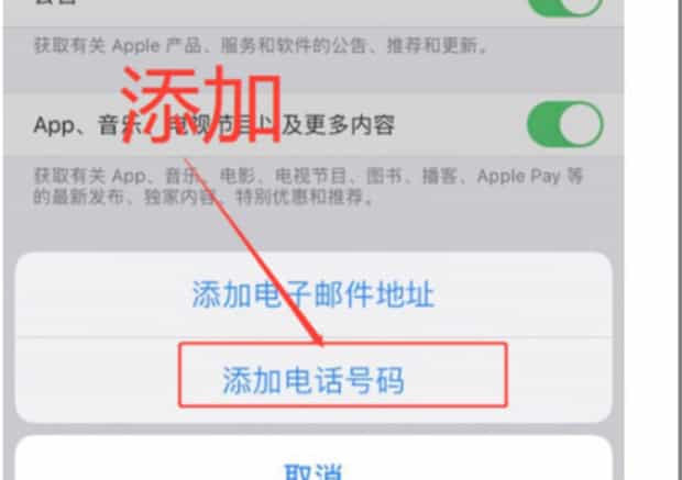 5、点击添加电话号码