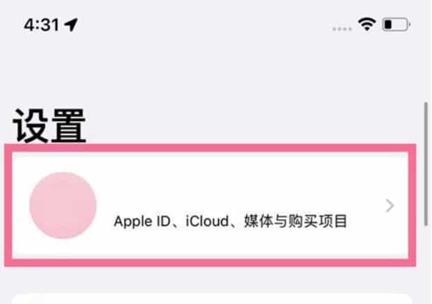2、进入设置界面之后点击顶部Apple ID