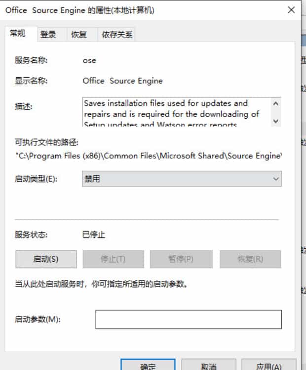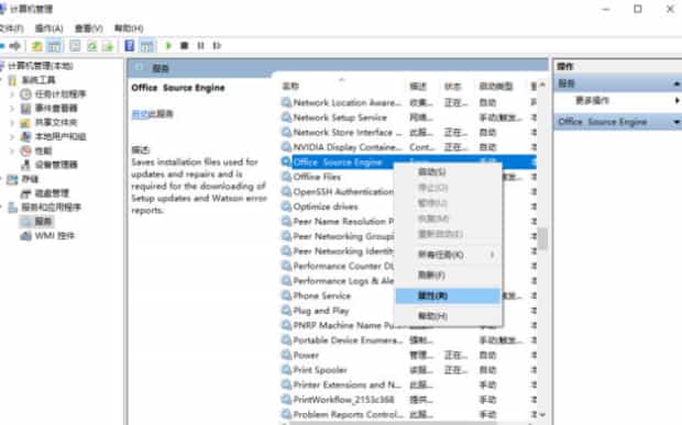3、在服务界面我们找到office source engine,右键点击属性进入属性界面。
