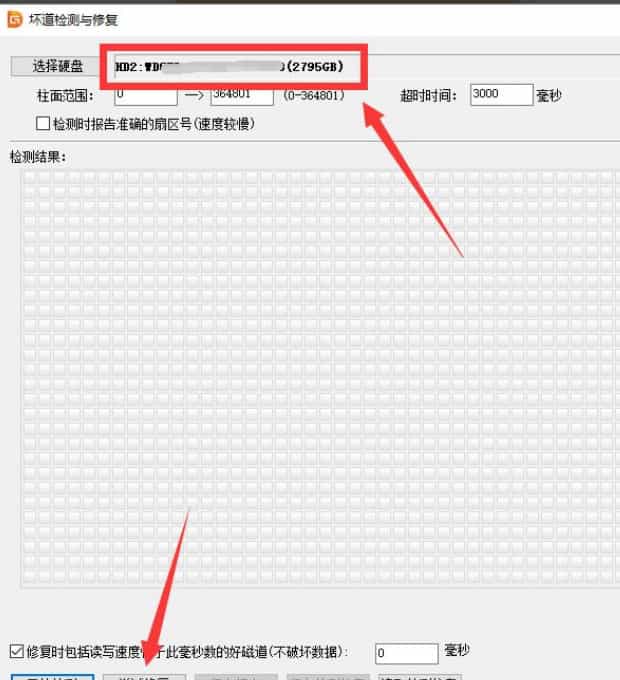 最后我们自己选择需要修复的硬盘,然后点击底部的尝试修复就可以等它自动修复了。