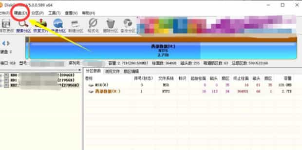 我们可以通过DiskGenius工具来对硬盘进行坏道修复,首先下载并打开DiskGenius软件,在首页中,点击左上角的硬盘。