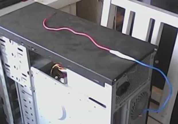 5、找一根电线将电脑的主机箱外壳和地面相连接,这样做可以及时的消除电脑所产生的静电。