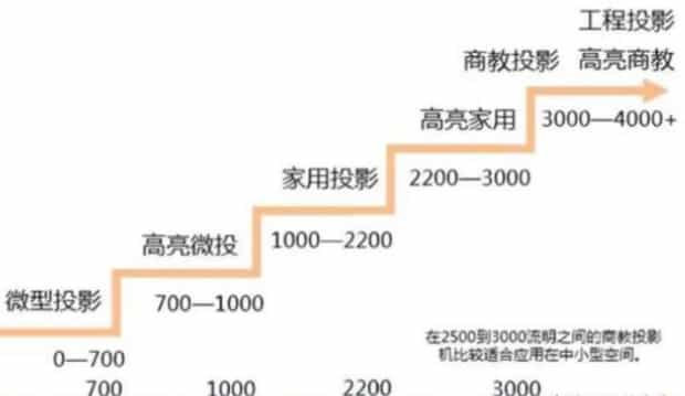 从光机流明亮度进行区分,主要分为微型投影仪、家用投影仪、商用投影仪3种