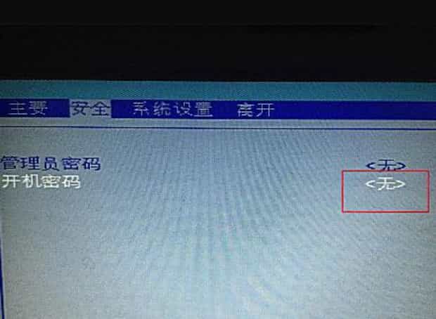 9、回到之前的开机密码选项那里,也可以看到后边显示无的选项,此刻也就取消开机密码了,全部设置完后按F10保存并退出即可。