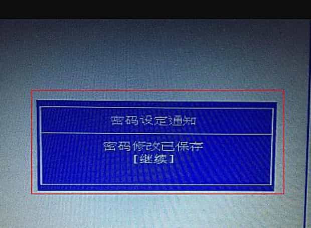 5、接着界面会显示密码修改已经保存,这个时候就设置好bios开机密码了,开机的时候就需要输入刚才设置的密码才能登录。