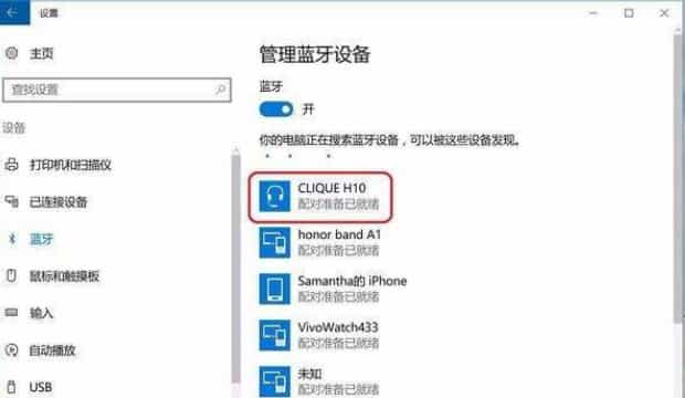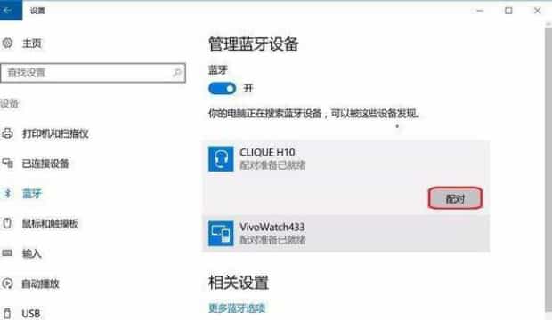 第四:打开蓝牙设备等待电脑搜索到该设备,点击匹配。