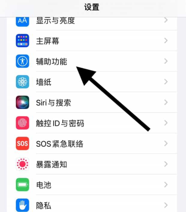 打开设置,点击辅助功能。
