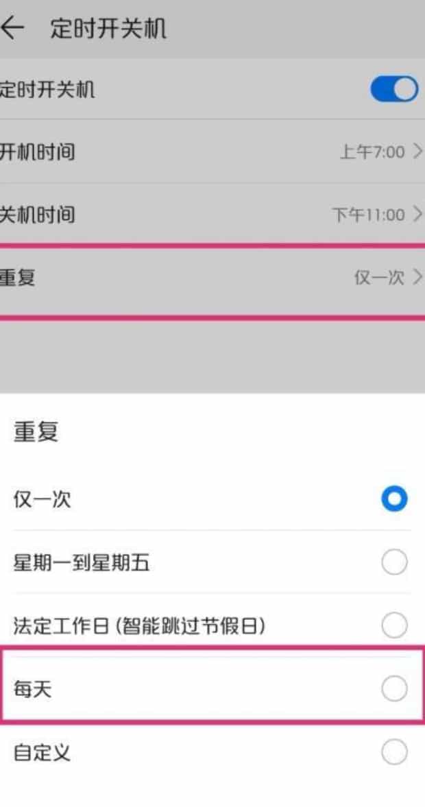 8、开关机设置好后,华为手机就会按照设置的时间及频率,定时开关机了。